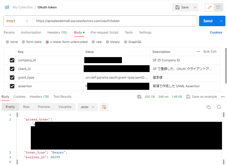 | grant_type | 固定値 “urn:ietf:params:oauth:grant-type:saml2-bearer” |