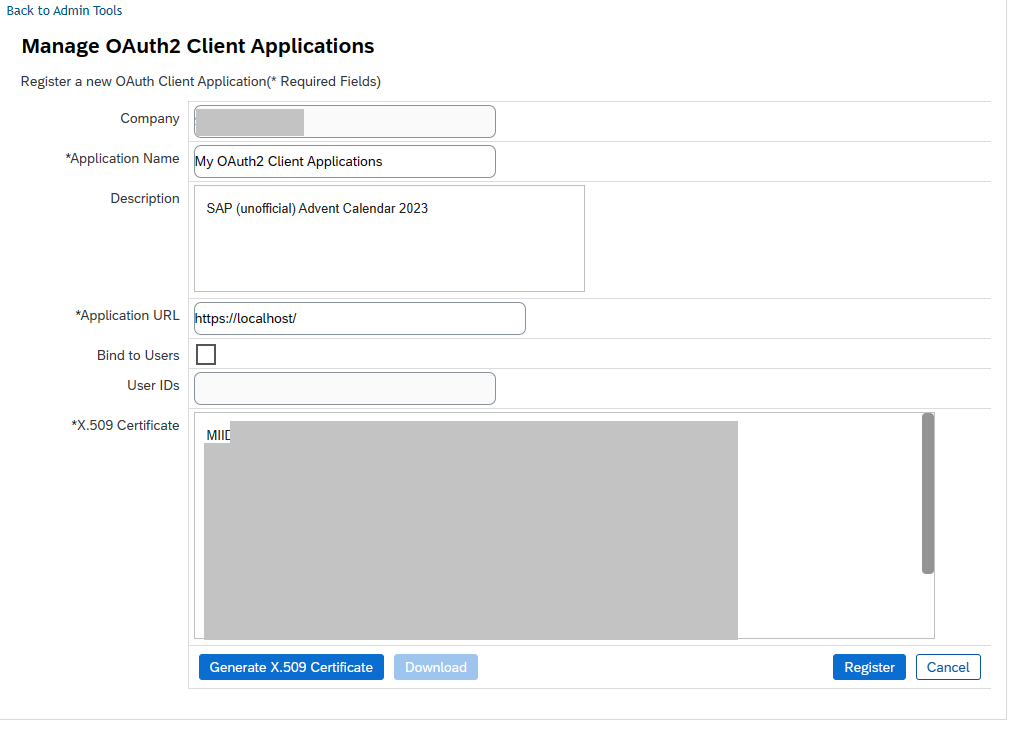 - SF の Manage OAuth2 Client Applications にアクセスできる権限を持っていること